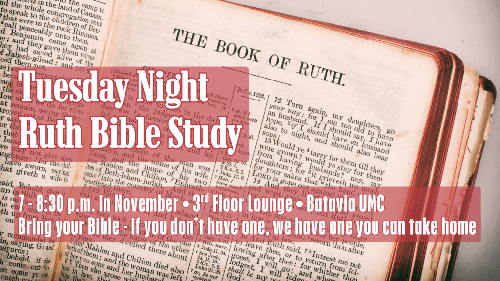 Join us on Tuesdays in November to read and discuss the book of Ruth from the Old Testament in the Bible. You don’t need to bring anything other than your Bible! (And if you don’t have a Bible, we have one you can take home.) Join for one week or all 4 – all are welcome!